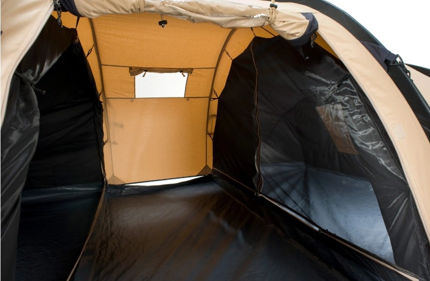 De Bardani Amigo 350 RSTC tunneltent is een vis-à-vis bijzettent die slaapplaatsen biedt aan twee tot vier personen. Binnen in de tent bevinden zich twee slaapcabines met in de zijwanden horrengaas voor extra ventilatie. In het midden van de tent bevindt zich een stukje leefruimte. Deze Bardani tunneltent is uitgerust met donkere binnententen, zodat u bent verzekerd van meer slaapcomfort. De tent is gemaakt van ademend, technisch ripstop katoen en afgewerkt met een permanent Air Vent ventilatiesysteem aan de zijkanten.