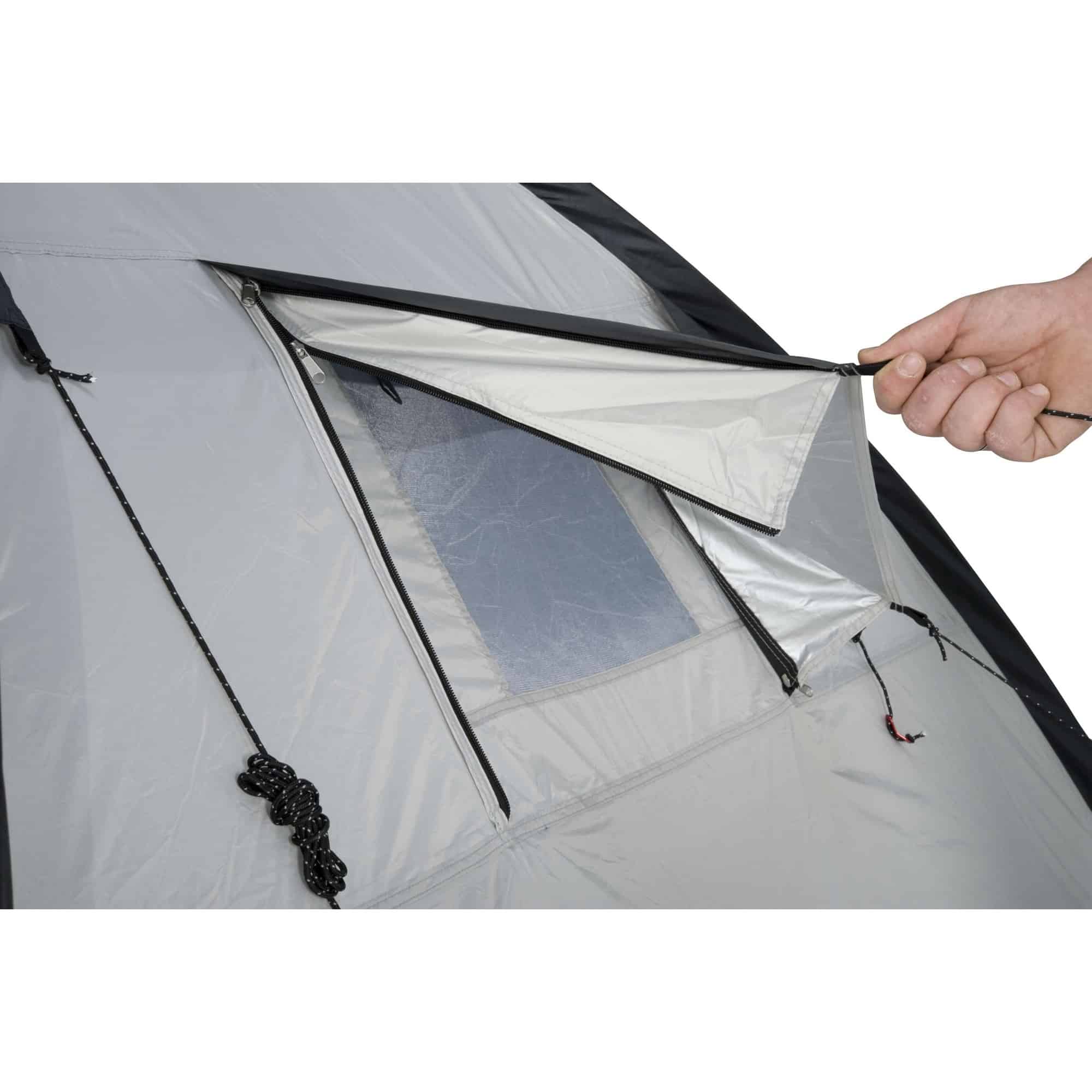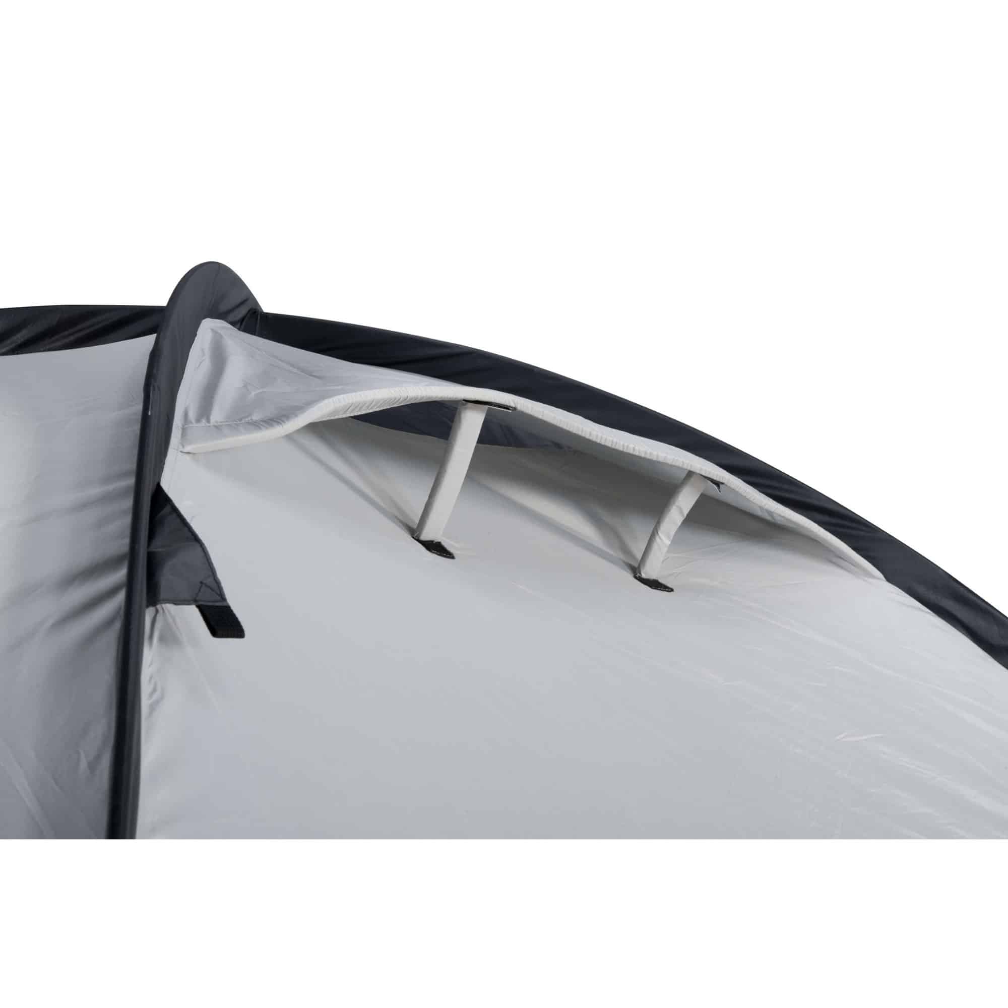 De binnentent is gemaakt van ventilerend polyamide, PE grondzeil en een volledige horrengaasdeur. De buitentunnelconstructie heeft een inklikbare optie voor de binnentent. De slaapcabine is uitneembaar en de ramen zijn afsluitbaar. De boogstokken zijn gemaakt van Fiberglas en de naden zijn getaped. Bij de tent worden haringen en reflecterende scheerlijnen geleverd.
