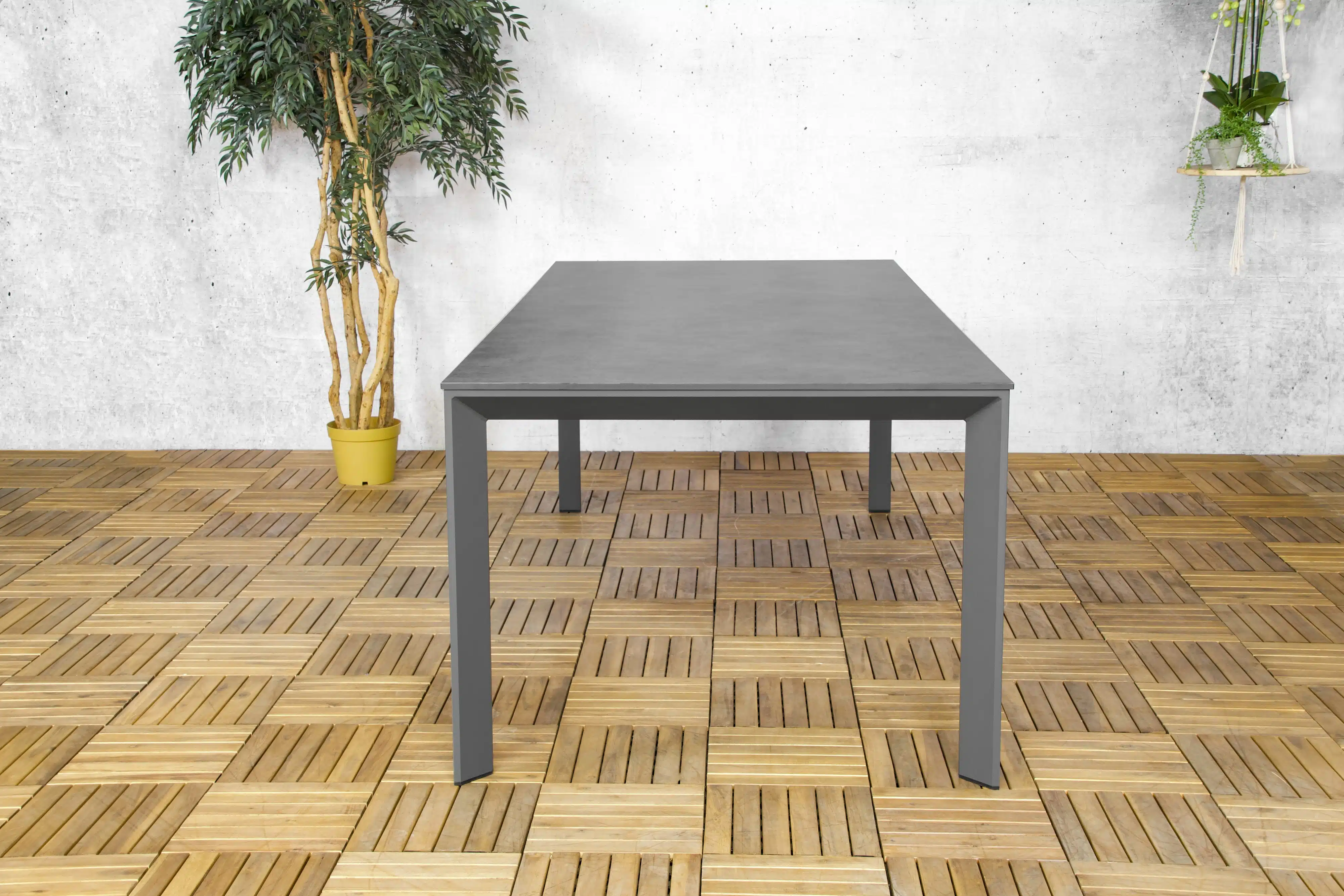Bianca tafel heeft een stevig ,aluminium onderstel. Het blad is gemaakt van onderhoudsarm HPL kunststof in een mooie granietlook. De Bianca tafels zijn er in 3 afmetingen; 140cm rond, 220×100 cm en 180×100 cm.