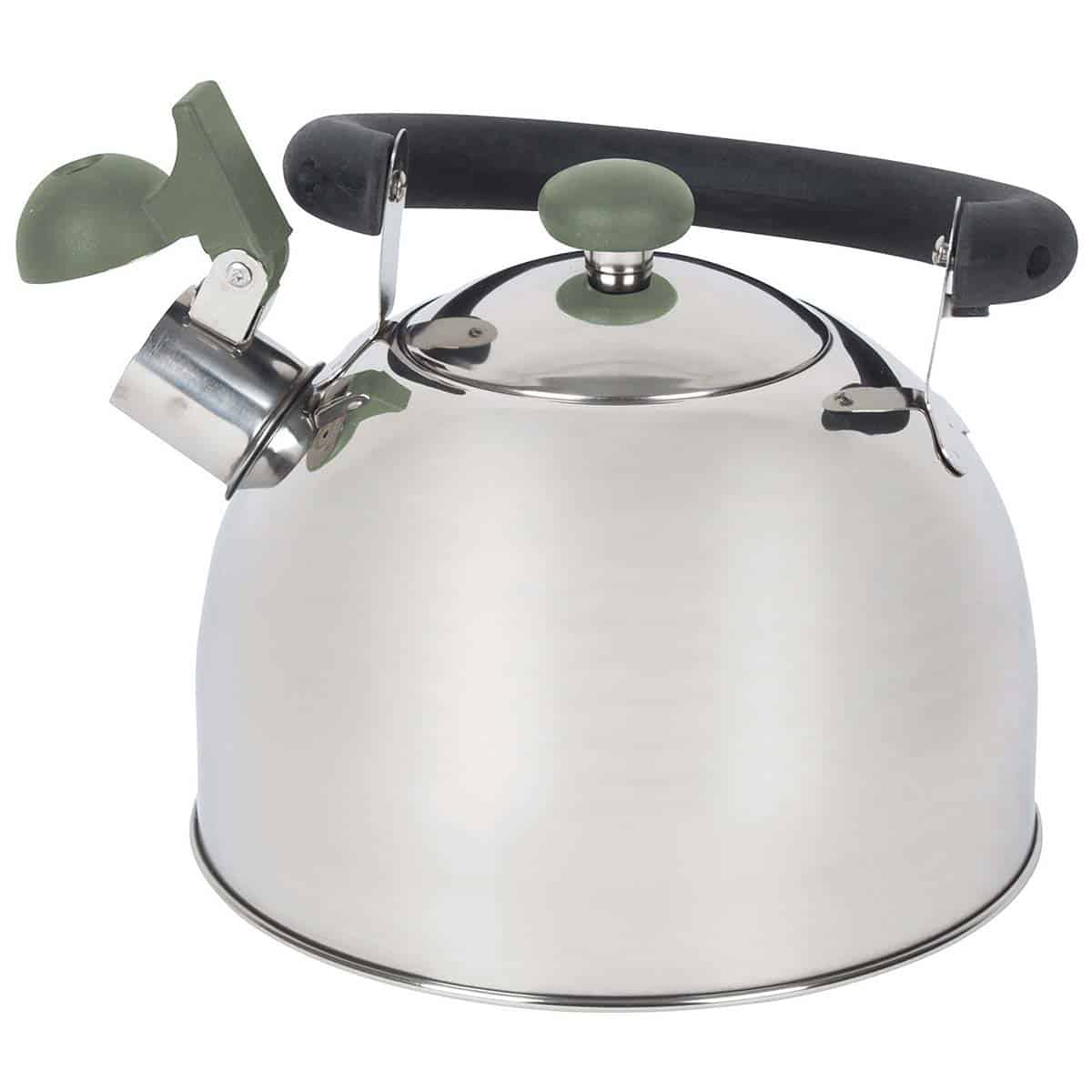 Een stevige theeketel. Gemaakt van roestvrij staal en voorzien van een stevige bodem. Extra compact door de wegklapbare fluitdop en handgreep. Ideaal voor onderweg.