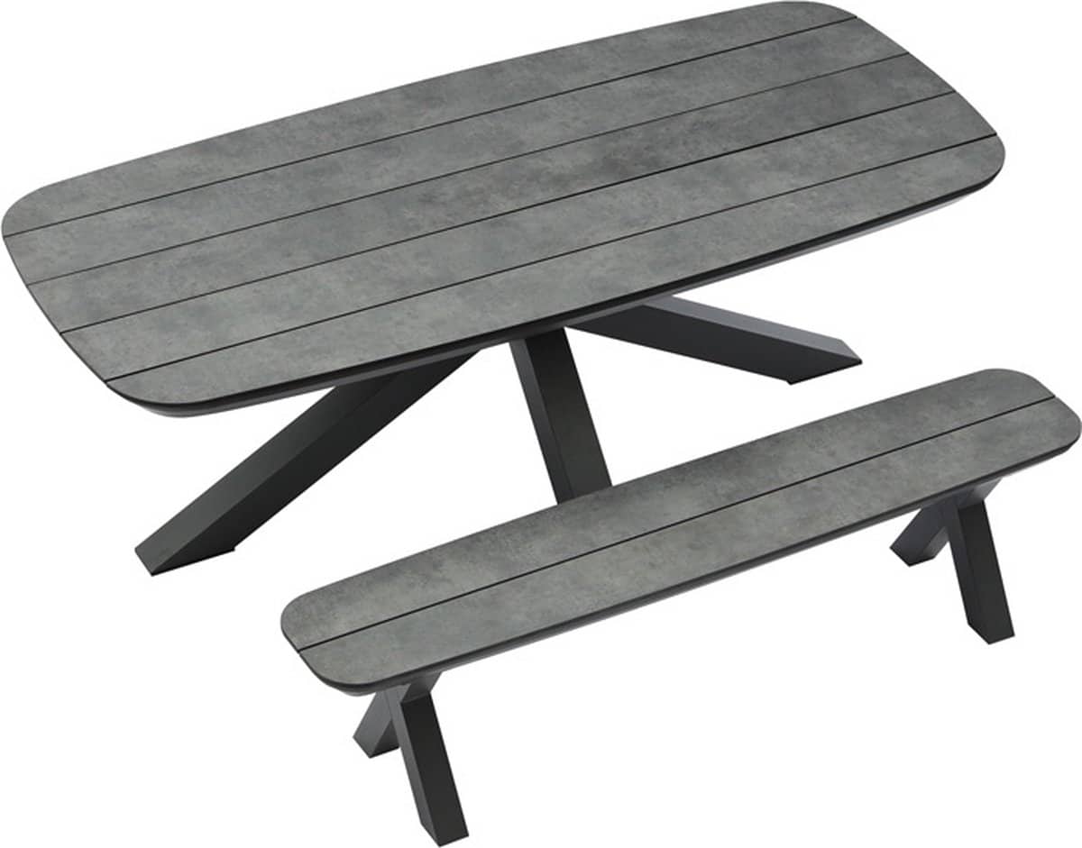 Ga naar de inhoudBradford tafel heeft een stevig ,aluminium onderstel. Het blad is gemaakt van onderhoudsarm HPL kunststof in een mooie houtlook.