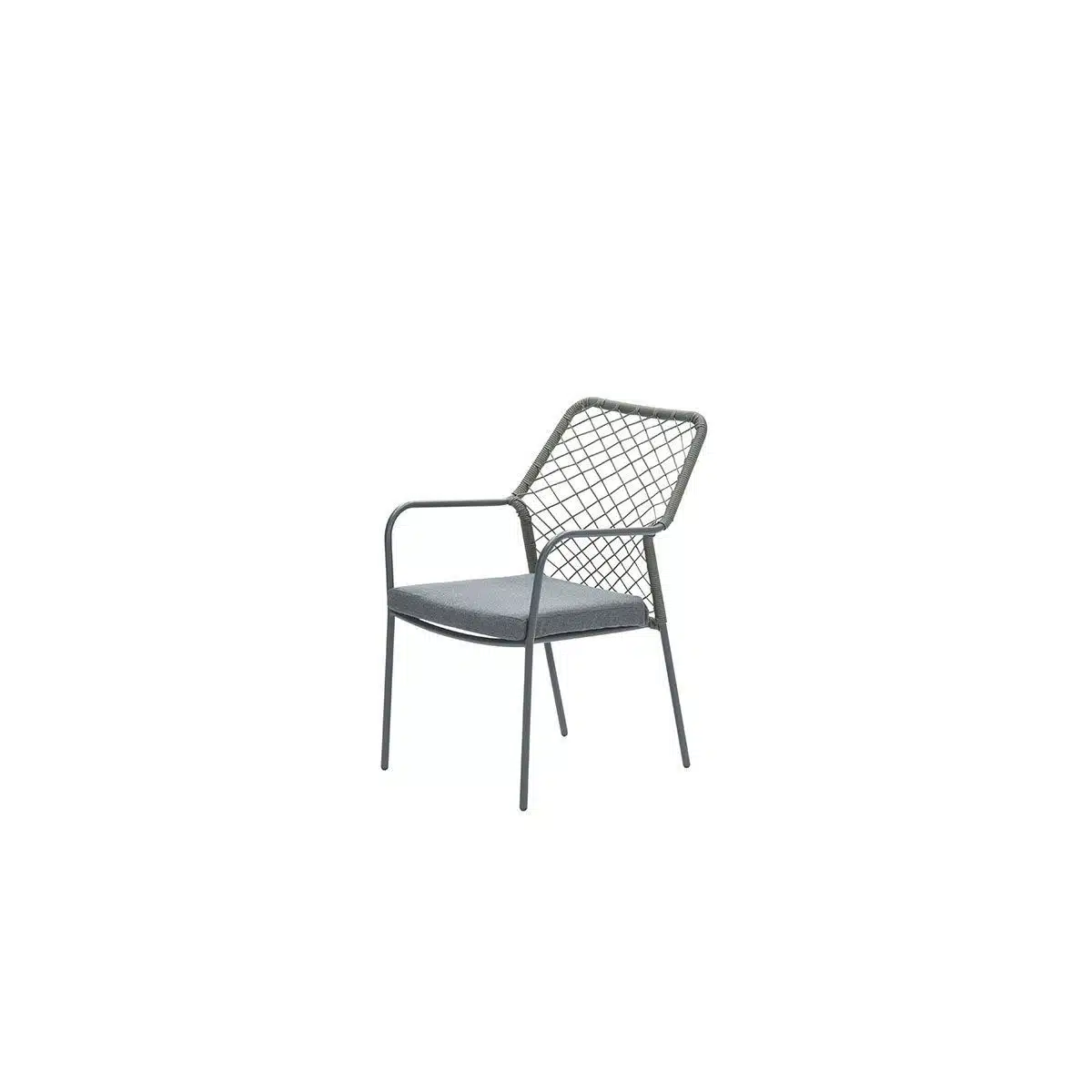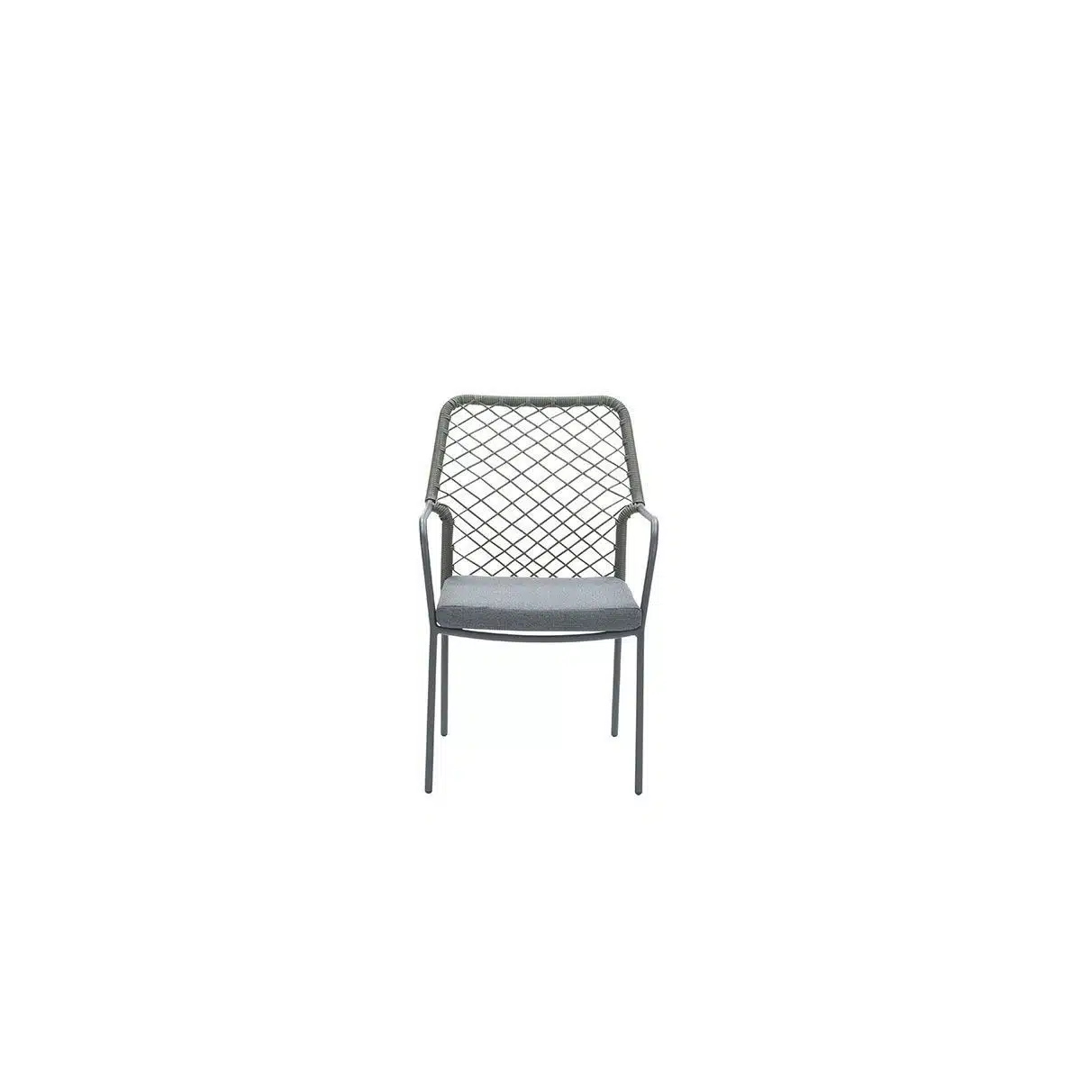 Stapelbare ,aluminium stoel met rope bekleding en zitkussen.