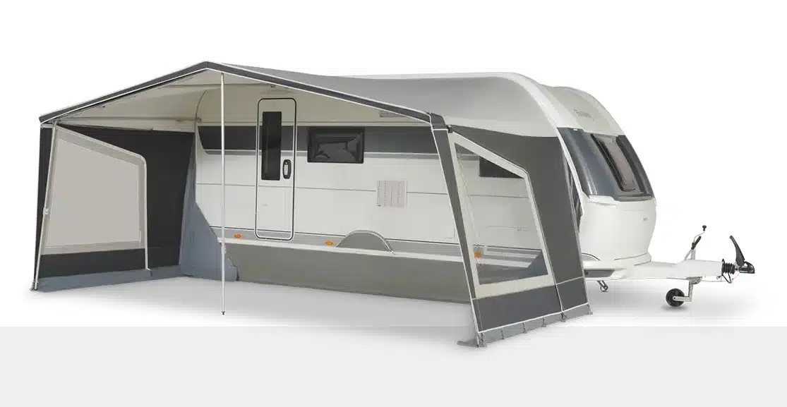 De Multi Nova Trend is de ideale mix van een voortent en luifel. Deze multifunctionele luifel/voortent is gemaakt van topkwaliteit Ten Cate All Season tentdoek. Alle wanden zijn naar wens in- en uitritsbaar en de beide zijwanden zijn voorzien van een fraai gestileerd afsluitbaar gaasvenster. De voorwand heeft twee deuren. Door één deur gesloten te laten, afhankelijk van de plaats van de deur van de caravan, creëert u aan één kant een ruime zithoek. Deze schitterende luifel/voortent wordt standaard geleverd met het unieke, snel opzetbare, aluminium EasyGrip Quick System frame of tegen meerprijs met het nieuwe supersterke lichtgewicht Fibre Tech Plus frame.