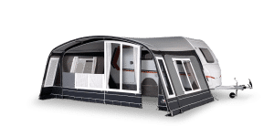 Ook in de optionele uitbouw is de extra luxe en comfort doorgevoerd door de riante afmetingen. De optionele Onyx luifel met een diepte van 200 cm maakt de voortent helemaal af. De hierdoor gecreëerde buitenruimte van maar liefst 250 cm geeft alle beschutting voor een ontspannen vakantie.
