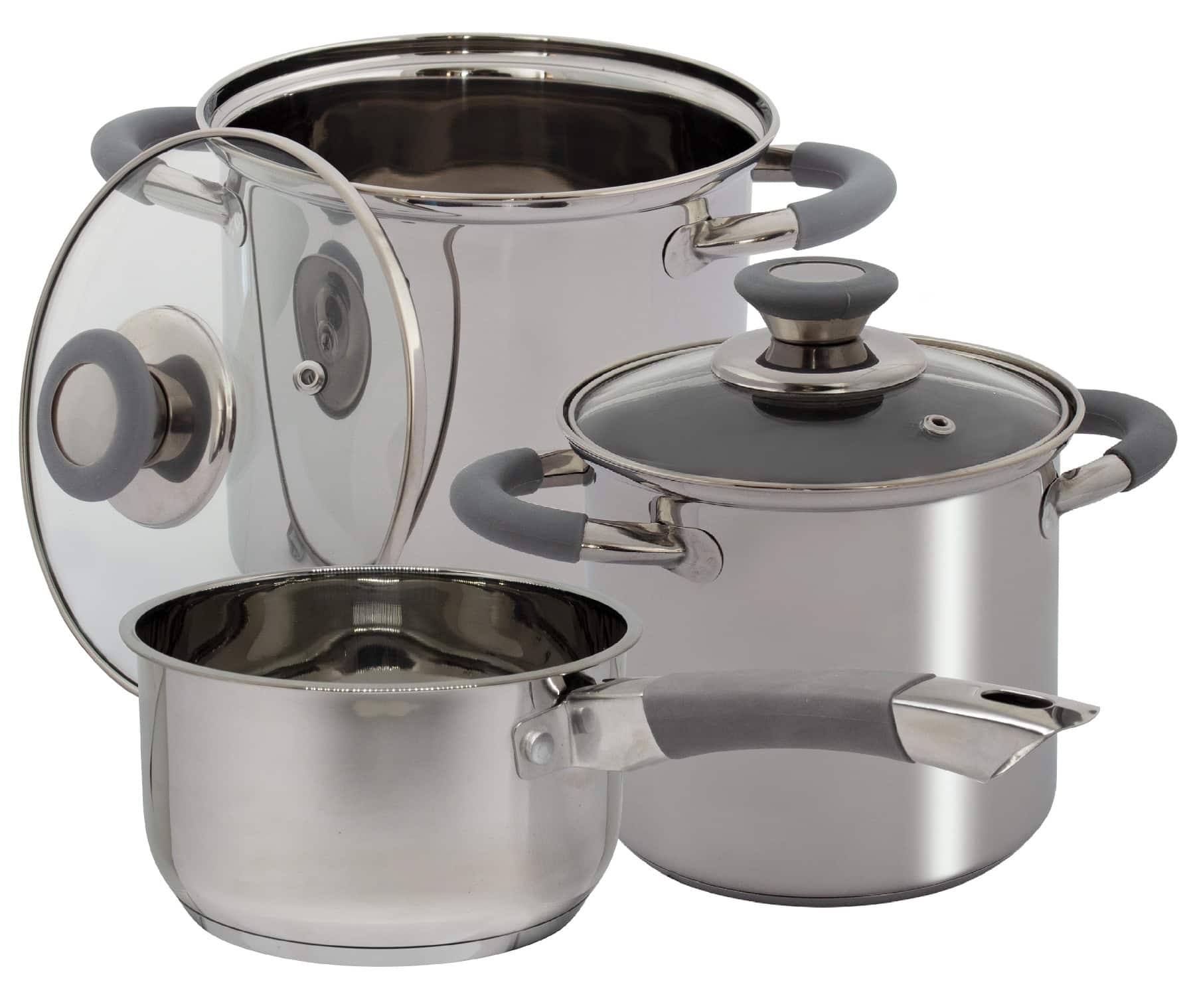 Pannenset bestaande uit 2 pannen en 1 sauce pan. De pannen met glazen deksel zijn vervaardigd van edelstaal, de handgrepen en dekselgreep zijn voorzien van een hittebestendig siliconen. Hoog model daardoor geschikt voor kleinere vuurpitten. De pannen hebben een capsule bodem en daardoor geschikt voor alle hittebronnen zoals gas, elektrisch, keramisch of inductie.