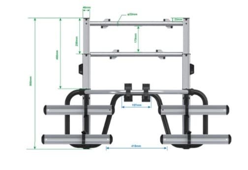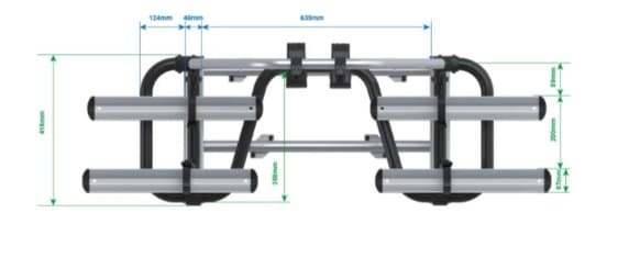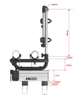 Deze lichtgewicht fietsendrager van maar 12.5kg heeft dezelfde functionaliteiten als de BC260 maar is voorzien van een compacter frame waardoor hij ook geschikt is voor kortere dissels.