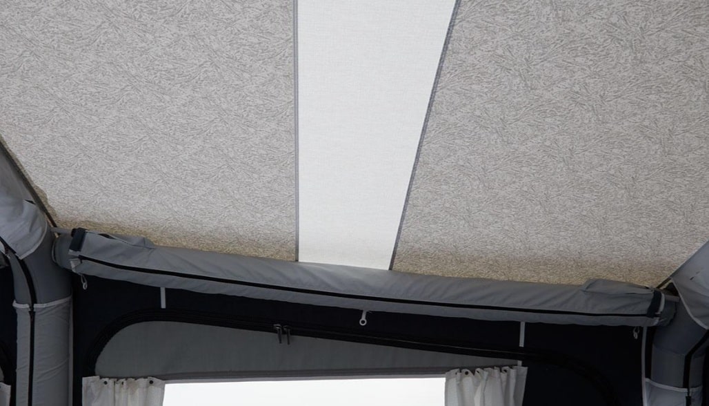 Isacrylmateriaal: De voor- en zijkanten zijn gemaakt van het gemakkelijk te reinigen Isacryl-materiaal, waardoor de kleuren van de voortent na verloop van tijd niet vervagen in de zon. Isacryl is ook een zeer goed ademende stof, wat zorgt voor een optimaal binnenklimaat in de voortent.