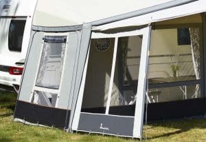 Wil je extra beschutting en afscherming, dan kun je optioneel een zijwand (261000311) aanschaffen voor het Eclipse zonneluifel. De zijwand heeft twee grote ramen en kan aan de linker- of rechterzijde worden gemonteerd. Gebruik je de zijwand en het Eclipse zonneluifel direct op de caravan (zonder voortent), dan is een Eclipse Adaptor (261000416) vereist. Dit is een klein zijstuk dat boven de zijwand wordt geplaatst en zorgt voor een goede afsluiting tussen de zonneluifel en de caravan.
