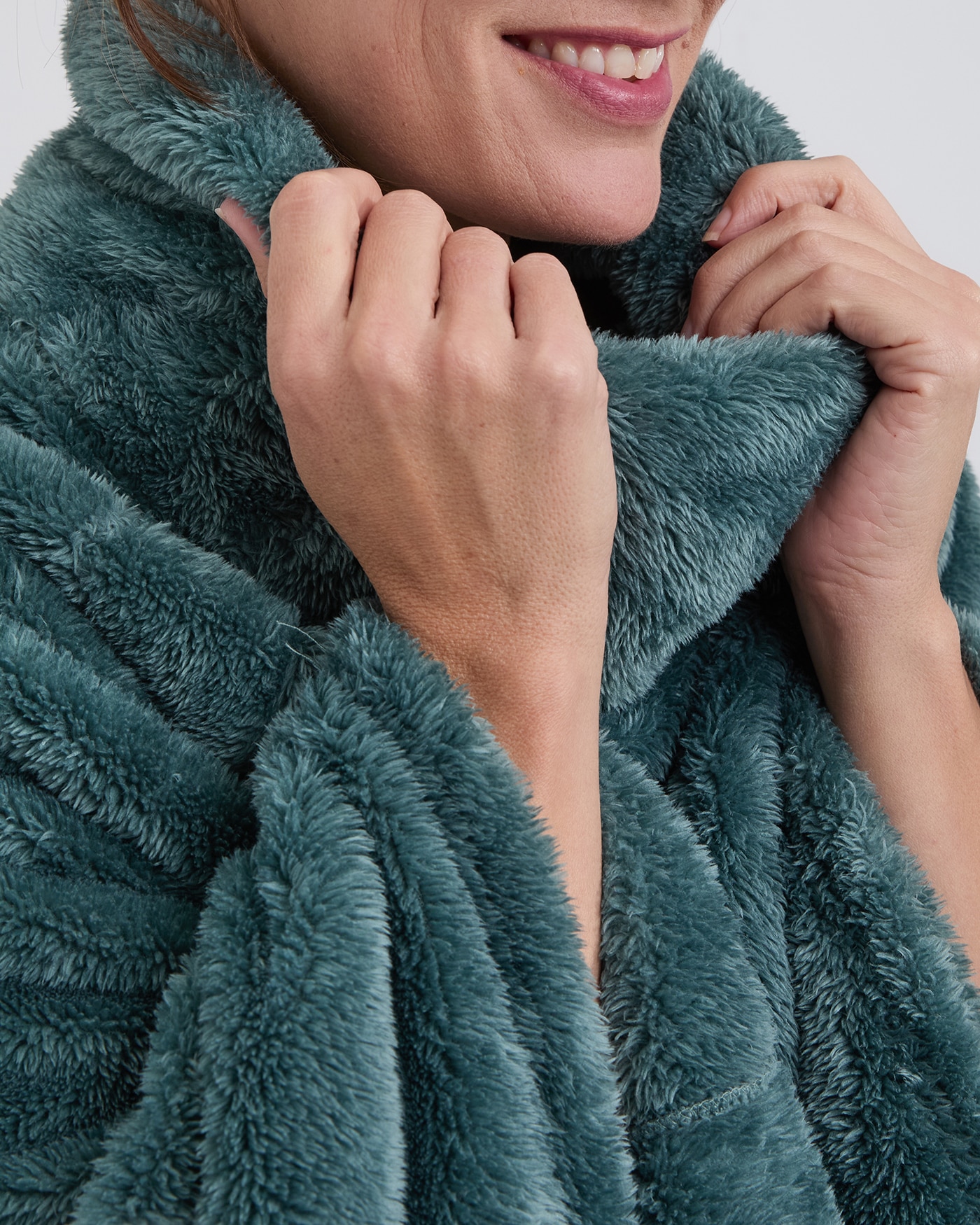 De poncho is vervaardigd van 100% gerecycled polyester, waardoor hij niet alleen warm en comfortabel is, maar ook een duurzame keuze. Of je nu gaat wandelen in de natuur, een outdoor activiteit onderneemt of de poncho casual thuis op de bank draagt, deze dames fleece poncho is veelzijdig inzetbaar.