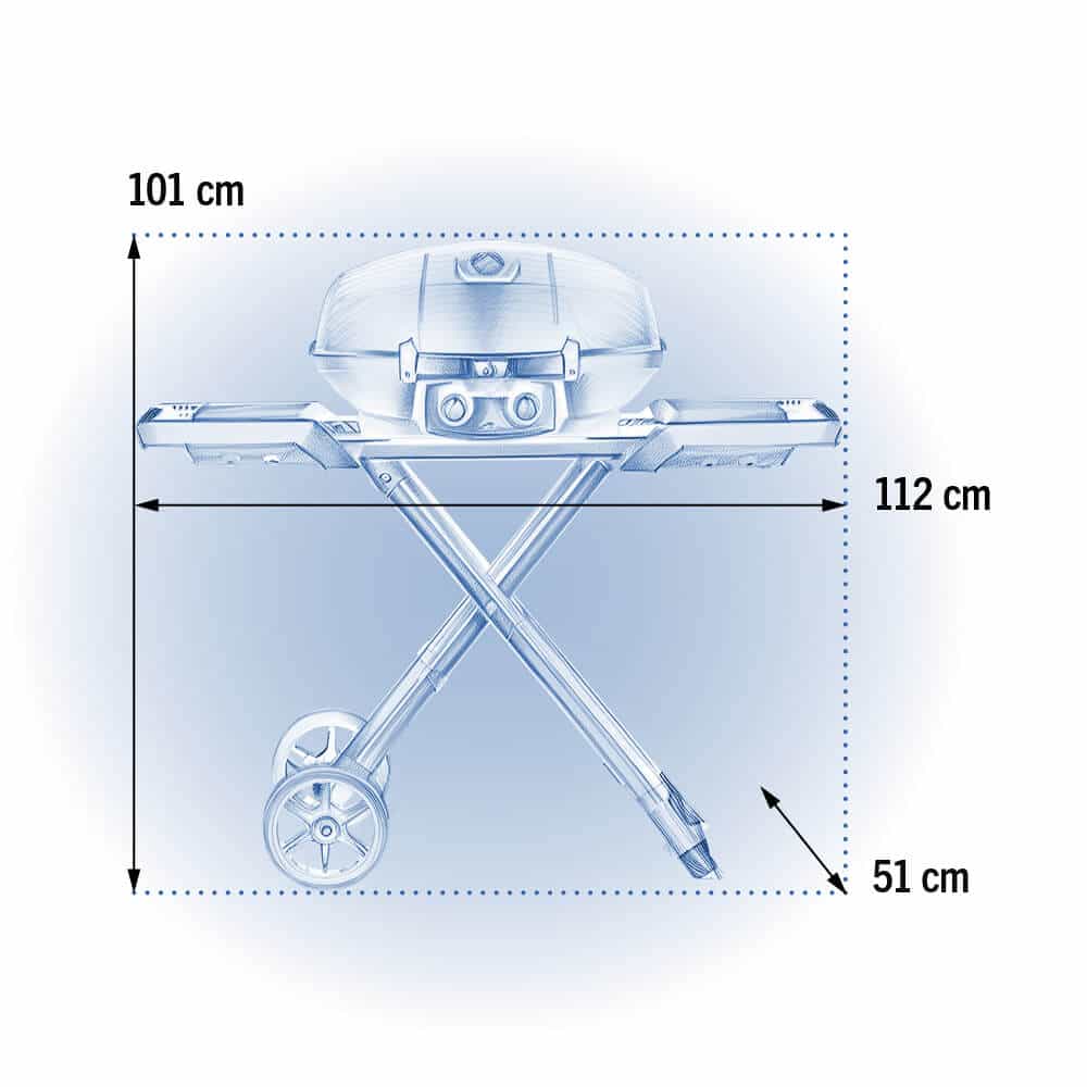 De stijlvolle geheel zwarte afwerking met chroomaccenten van de TravelQ ™ PRO285 past perfect in uw tuin. Het hoge deksel van gegoten aluminium maakt grillen een gastronomische ervaring. Net als bij de grote barbecues van Napoleon kunt u met behulp van de tweevoudige RVS-branders nauwkeurig de temperatuur regelen. Het aanzetten van vlees is een warm kunstje en zodra u die karakteristieke grillstrepen ziet, weet u dat u een Napoleon met iconische RVS WAVE™-grillroosters hebt. Deze barbecue heeft alles wat u nodig hebt: wieltjes voor alle terreinen, eenvoudige inklap- en opbouwmogelijkheden, compacte opslag en gasflesriemen — deze barbecue is geschikt voor elk avontuur. Er gaat niets boven dit mobiele, professionele pakket.