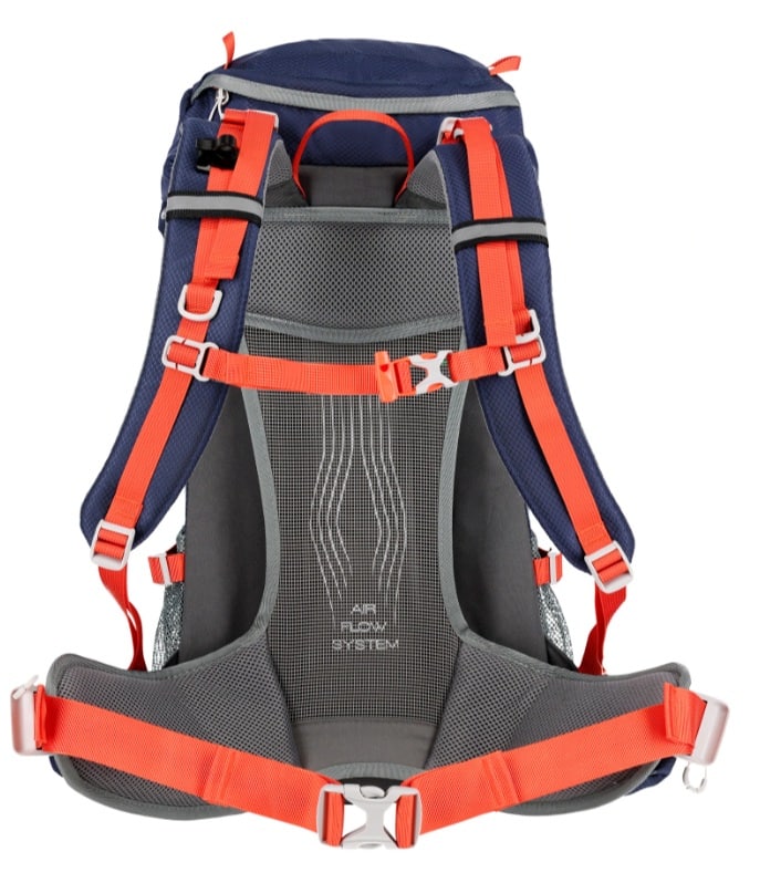 Een geïntegreerd noodfluitje is op de gesp van de borstband geplaatst, wat de veiligheid van de gebruiker verhoogt. Een extra paneel met handgrepen biedt de mogelijkheid om bijvoorbeeld wandelstokken of andere accessoires te bevestigen. De rugzak heeft ook twee zijvakken van mesh en een vak met ritssluiting op de heupband, ideaal voor een telefoon of andere kleine spullen.