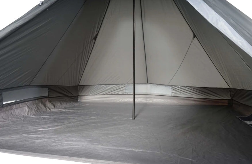 Geen zorgen over een zomerse regenbui: het vastgestikte PE kuipgrondzeil met opstaande randen houdt vocht en ongedierte effectief buiten. Om het binnenklimaat aangenaam te houden, is de tent voorzien van permanente ventilatieopeningen bovenin de nok. Hierdoor circuleert er altijd frisse lucht, wat condensvorming minimaliseert, zelfs als het buiten regent.