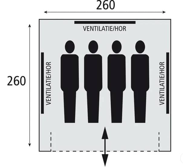 Flexibele Indeling: Geschikt voor 2 kampeerders met veel bagage of tot 4 personen op slaapmatjes.