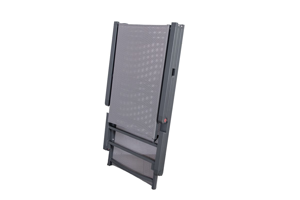 De Siesta is gemaakt van aluminium met een textileen bekleding. De Siesta is helaaml inklapbaar.