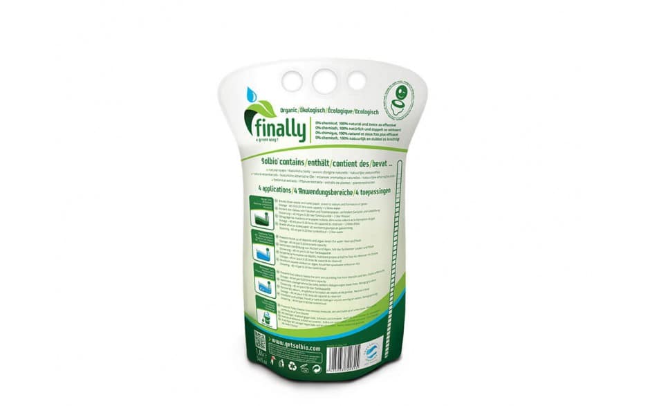 – Solbio vloeistof breekt afval en toiletpapier af, gaat nare geurtjes en gasvorming tegen.