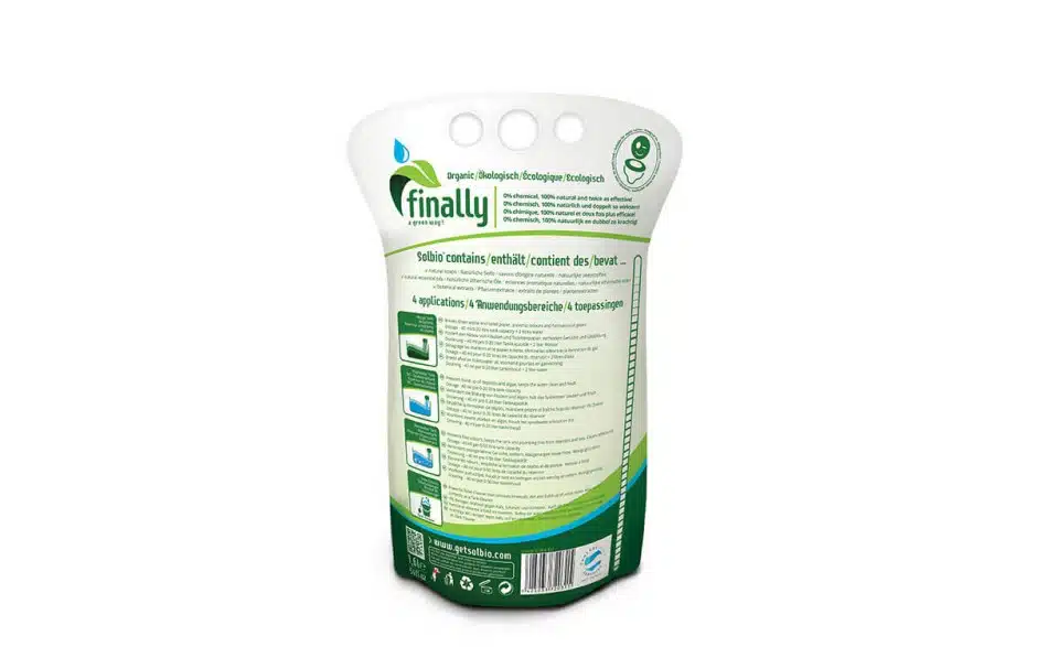 – Solbio vloeistof breekt afval en toiletpapier af, gaat nare geurtjes en gasvorming tegen.