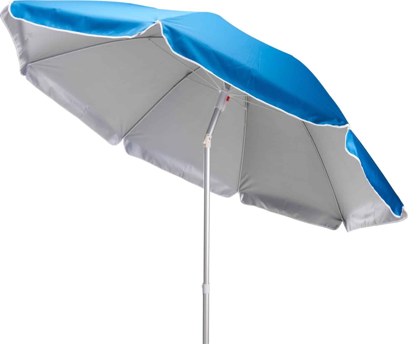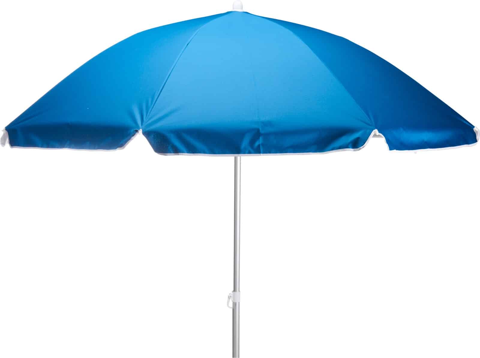 Strandparasol 200 cm blauw met polyester doek en alu coating aan de binnenzijde dus extra zonwerend.