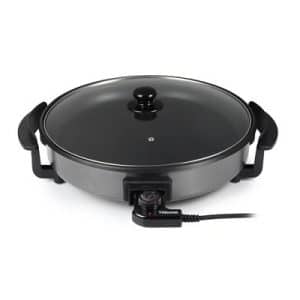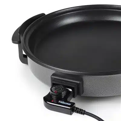 De Tristar PZ-2963 Hapjespan is een elektrische hapjespan met vijf verschillende temperatuurstanden waarmee je allerlei soorten gerechten kunt maken: van paella tot aardappeltjes en van gehaktballetjes tot nasi. Dankzij de anti-aanbaklaag bakt de pan niet aan en kun je hem na gebruik heel gemakkelijk schoonmaken.