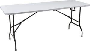 Stevige vouwtafel met een kunststof blad. De poten zijn eenvoudig in te klappen.