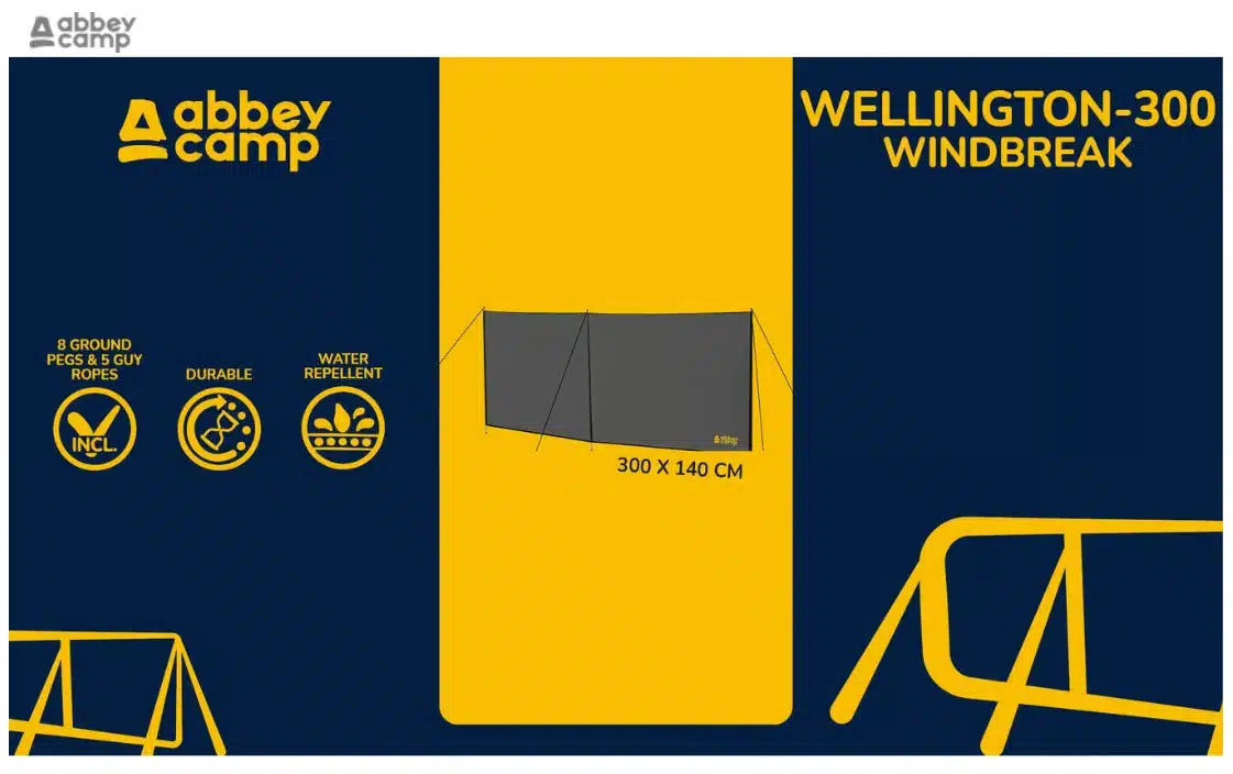 Inhoud verpakking doek, 3 stokken, 8 haringen, 5 scheerlijnen